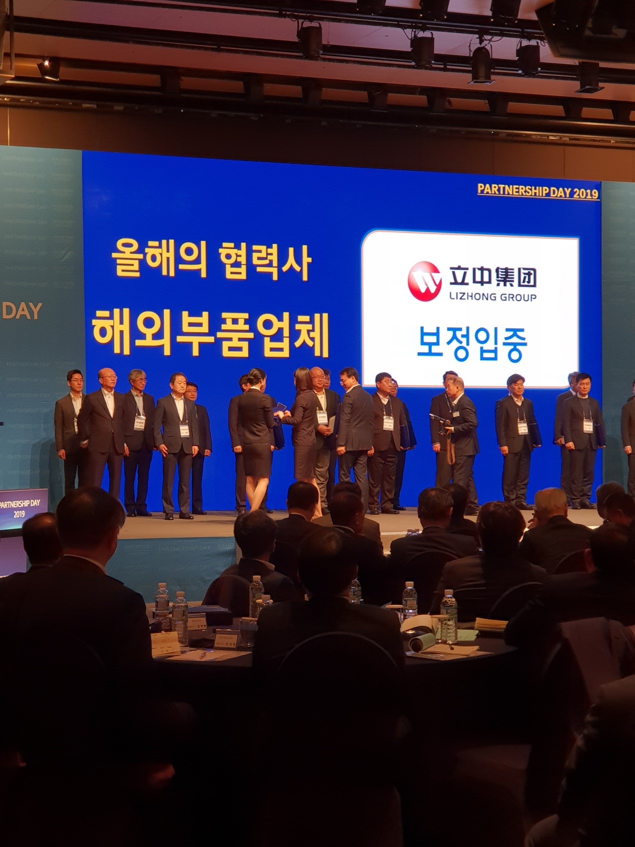 2019年1月,現代起亞汽車集團授予保定市立中車輪制造有限公司“優秀供應商”獎項并頒發證書。集團總裁張建良先生作為集團代表出席了大會并接受頒獎。 此獎項是現代起亞汽車集團對供應商開發能力、交付能力及品質保證的全面認可,意義非凡。